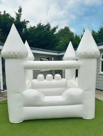 Our all white 8ft toddler castle which fits in every venue. Package price inclusive of castle, a full soft play set up with ball pit, tower blocks, step and slide, rocker, stacking blocks, ride on cars, hoppers and slide, all personalised and inclusive of an LED light up number. Different soft play colours available based on your theme.