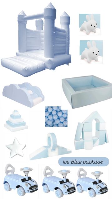 This is our brand new Ice blue castle with matching blue/white and lilac soft play. Perfect for a Frozen/ Winter ONEderland theme) Package price inclusive of castle, ball pit, a full soft play set up, all personalised and inclusive of an LED light up number