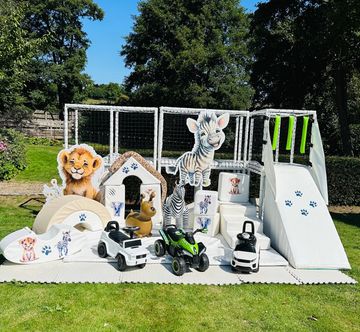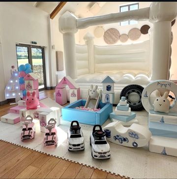We can do any theme to suit your event with our gorgeous white Play Frame and soft play set ups. Full soft play set up will include ball pit, hoppers, 5 x piece soft play blocks, step and slide set, pyramid blocks and ride on cars. The whole set up can be personalised included in this price if requested £599 - Full set up dimensions: 3m full width x 3.5m depth x 1.8m height (We require a minimum of of 76cm in width and 1.8m in height, no stairs and no lifts, so please make sure you have measure