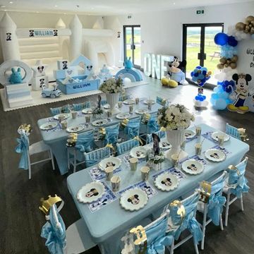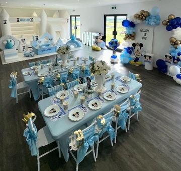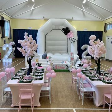We provide everything including the centre pieces (plates, cups, cutlery) and love creating beautiful set ups. Chiavari Chair colours: - White (50x), Pastel Pink (10x), Lilac (10x) £100 per 10 x children. Seating available for up to 50.