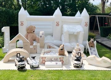 Our Lux package will include a white Bouncy Castle, full soft play set up with ball pit, ride on cars, hoppers ect, LED light up number and full table and chairs set up for 20. This package will be fully personalised and is perfect if you don't want us to do it all. Just leave it with us.